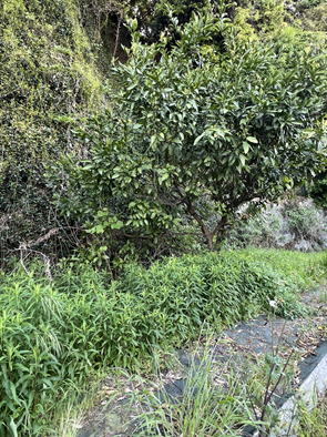 2日後に現地を訪ねてみました。セイタカアワダチソウは草むらにまばらに生えていたのではなくて、ミカンの木の下にひと固まりの群落がありました。一昨日よりも少し背が高くなり、虫の数も減っているような…。成虫になったアワダチソウグンバイ達は飛び立っていったのでしょうか、春の時間は大急ぎで過ぎて行くようです。