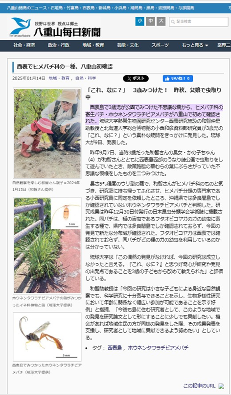 八重山毎日新聞 2025.1.14