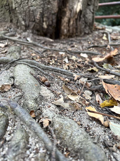 ここは見晴らしも悪く車道からも外れているのでめったに人も通りません。巣穴の前には防波堤のように木の根が幾重にも張り出し絡んでいるので死骸が風雨に飛ばされることも無いのです。